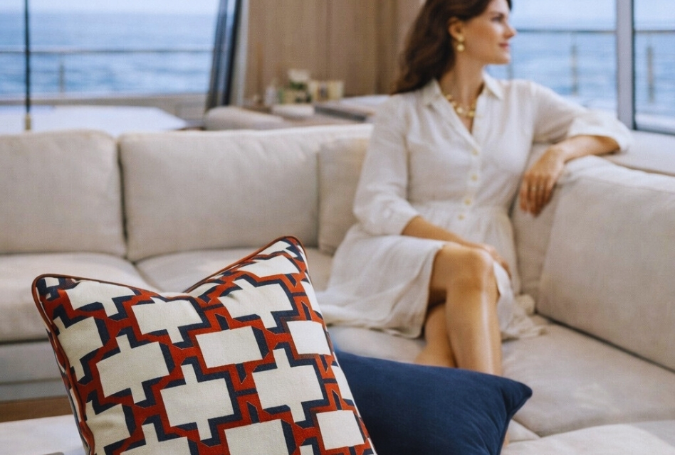 These cushions are ideal for the sun deck, outdoor lounge areas, and beach club, where red highlights the dynamic spirit of life outdoors and creates an atmosphere of daring, sophisticated luxury that captures attention and stirs emotion